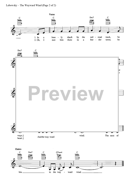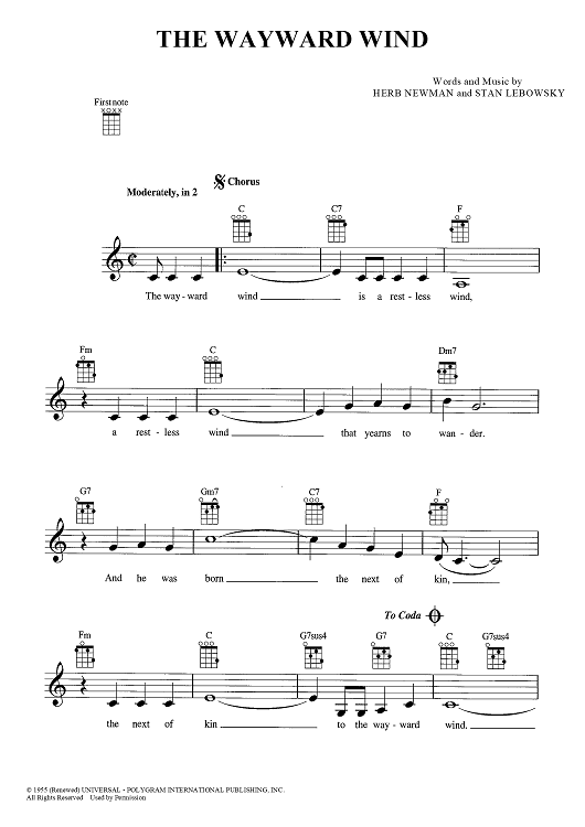 Digital Sheet Music for The Wayward Wind by Herb Newman, Stan Lebowsky, Gogi Grant scored for Ukulele/Vocal; id:447704