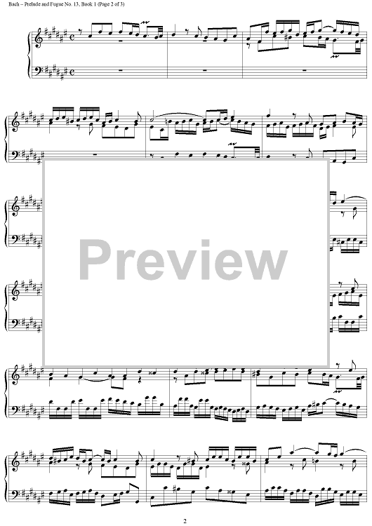 Digital Sheet Music for The Well-tempered Clavier (Book I): Prelude and Fugue No. 13 by Johann Sebastian Bach scored for Piano Solo; id:307754