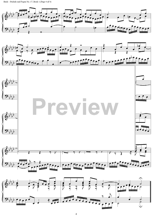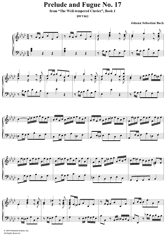 Digital Sheet Music for The Well-tempered Clavier (Book I): Prelude and Fugue No. 17 by Johann Sebastian Bach scored for Piano Solo; id:307758