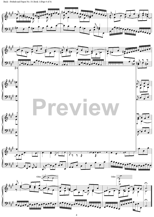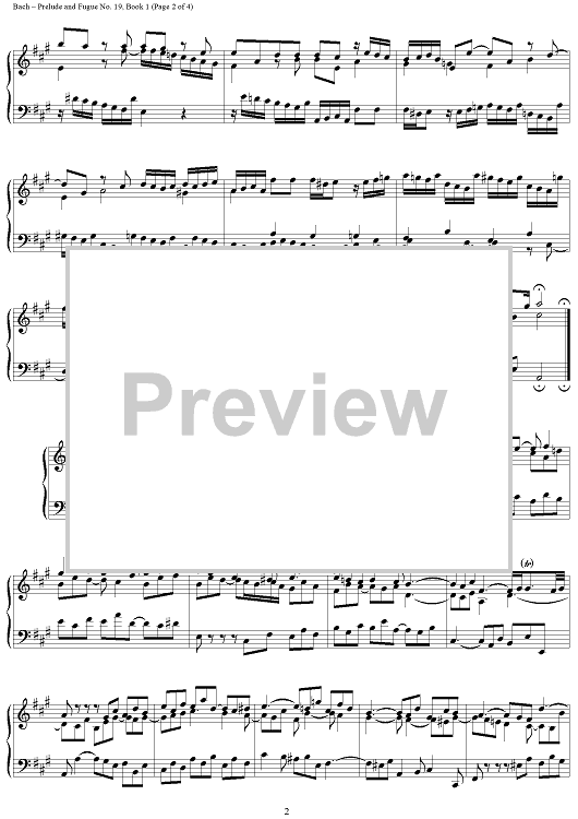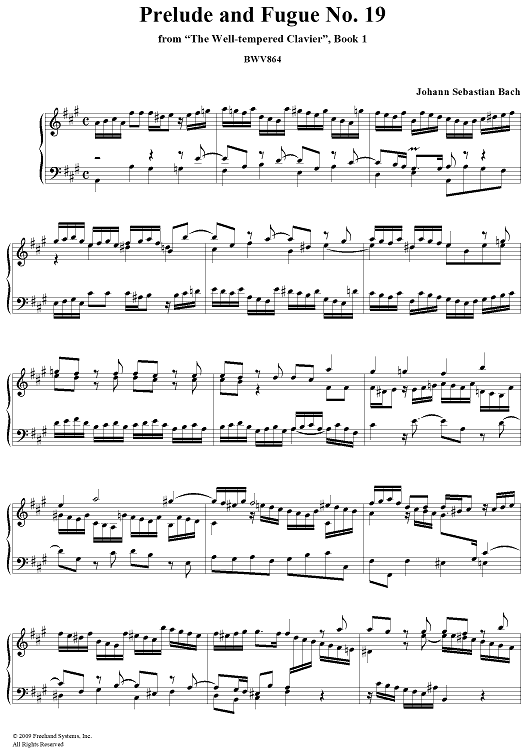 Digital Sheet Music for The Well-tempered Clavier (Book I): Prelude and Fugue No. 19 by Johann Sebastian Bach scored for Piano Solo; id:307760