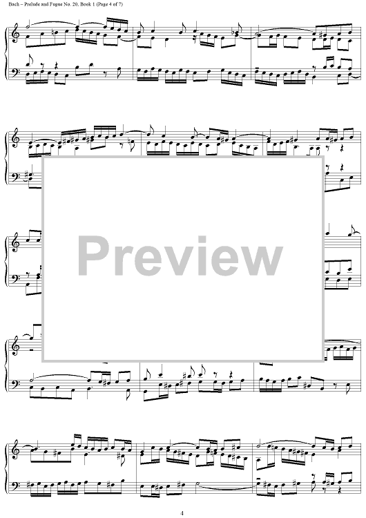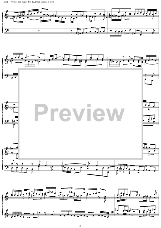 Digital Sheet Music for The Well-tempered Clavier (Book I): Prelude and Fugue No. 20 by Johann Sebastian Bach scored for Piano Solo; id:307762
