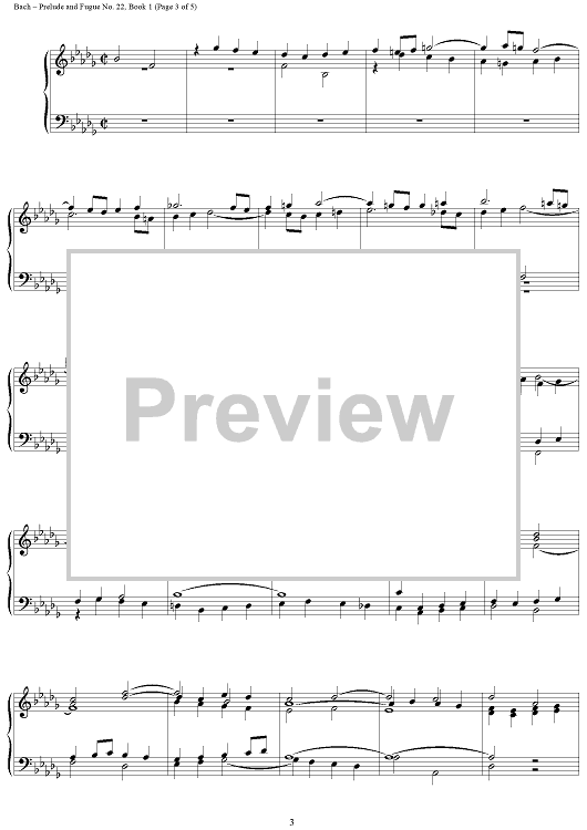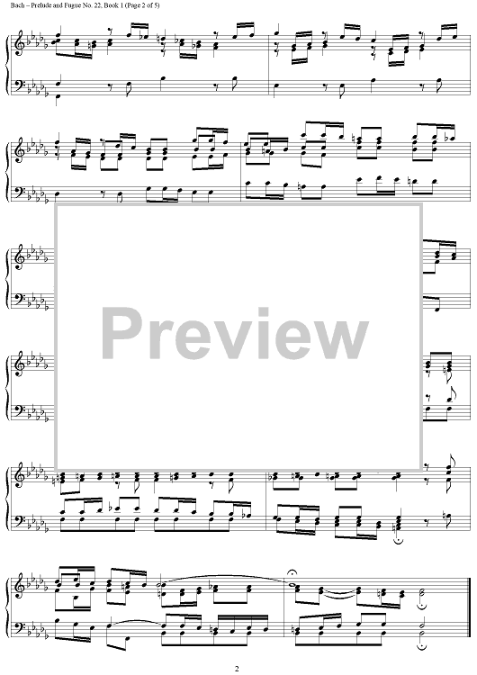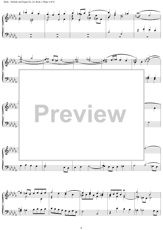 Digital Sheet Music for The Well-tempered Clavier (Book I): Prelude and Fugue No. 22 by Johann Sebastian Bach scored for Piano Solo; id:307764