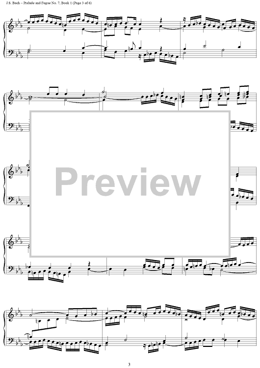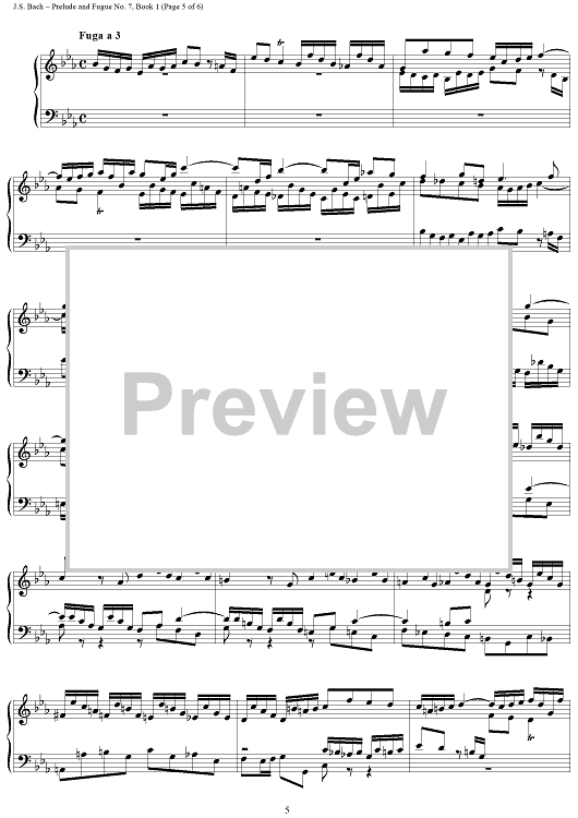 Digital Sheet Music for The Well-tempered Clavier (Book I): Prelude and Fugue No. 7 by Johann Sebastian Bach scored for Piano Solo; id:95009