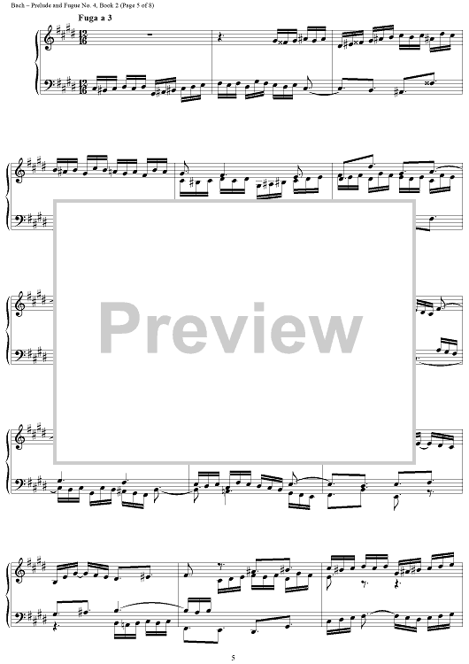 Digital Sheet Music for The Well-tempered Clavier (Book II): Prelude and Fugue No. 4 by Johann Sebastian Bach scored for Piano Solo; id:307770
