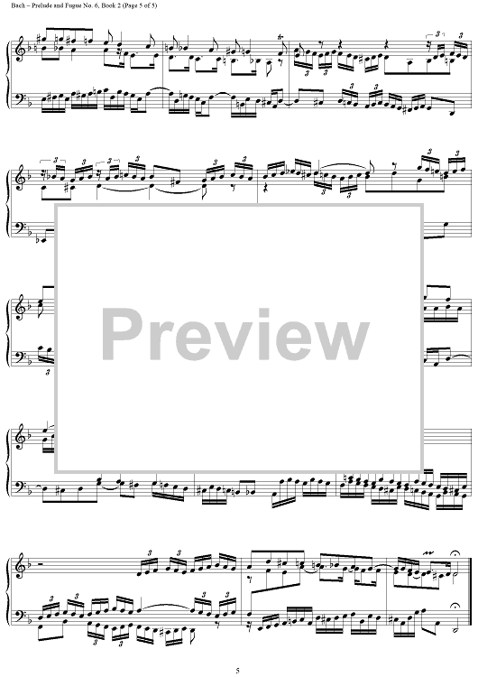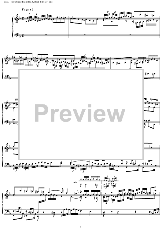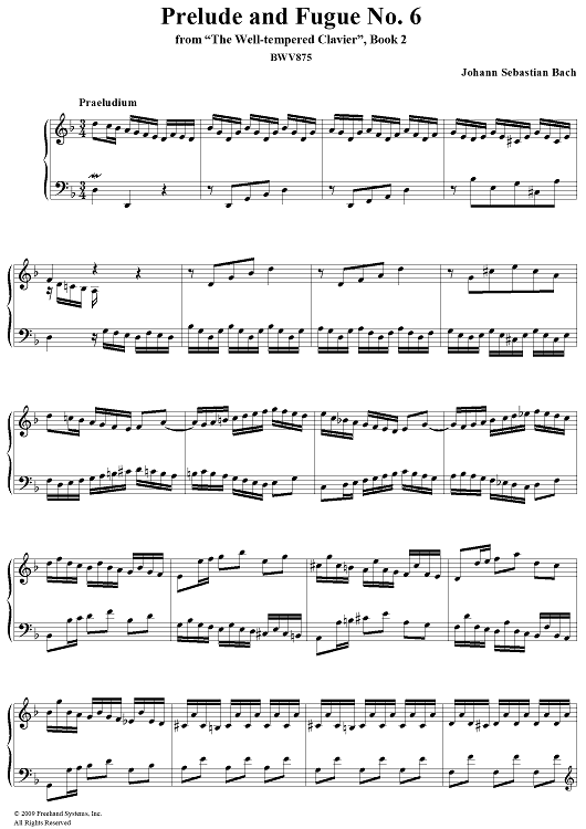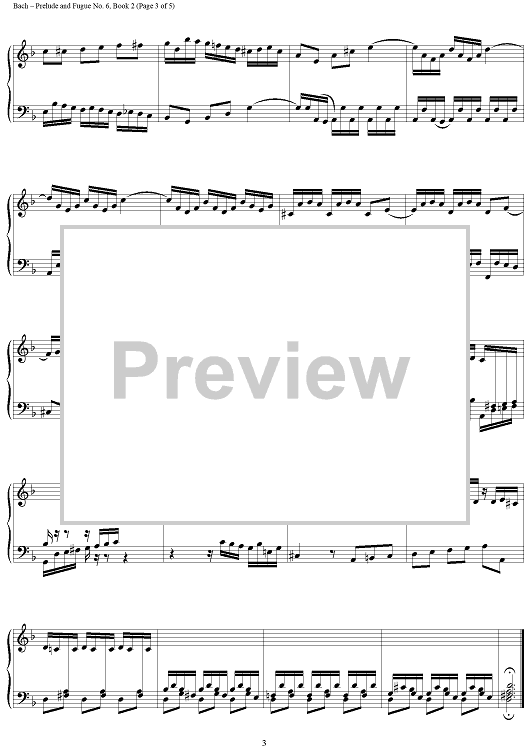 Digital Sheet Music for The Well-tempered Clavier (Book II): Prelude and Fugue No. 6 by Johann Sebastian Bach scored for Piano Solo; id:307772