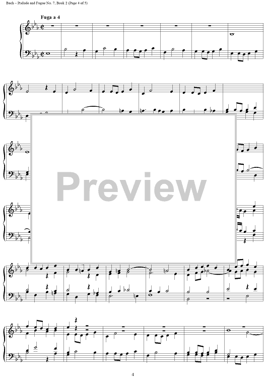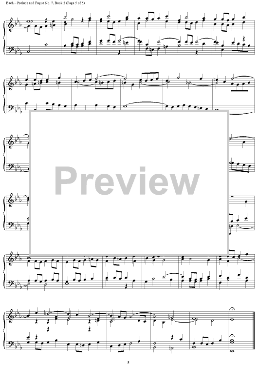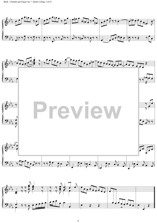 Digital Sheet Music for The Well-tempered Clavier (Book II): Prelude and Fugue No. 7 by Johann Sebastian Bach scored for Piano Solo; id:307773