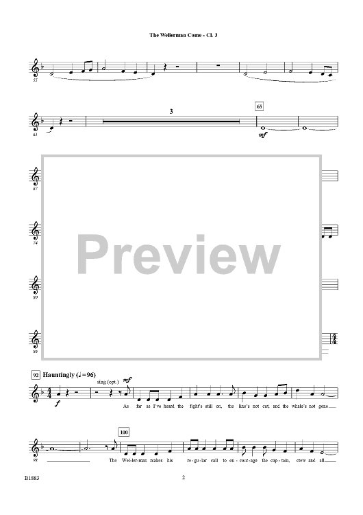 Digital Sheet Music for The Wellerman Come - Bb Clarinet 3 by Travis J. Weller scored for Concert Band; id:498928