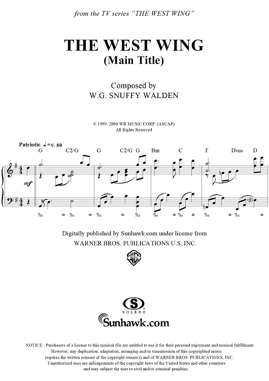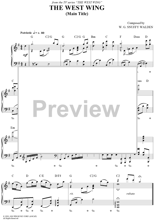 "The West Wing (Main Title)" Sheet Music by W.G. Snuffy Walden