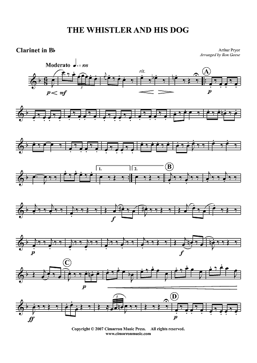 "The Whistler and His Dog - Clarinet in B-flat" Sheet Music by Arthur Pryor