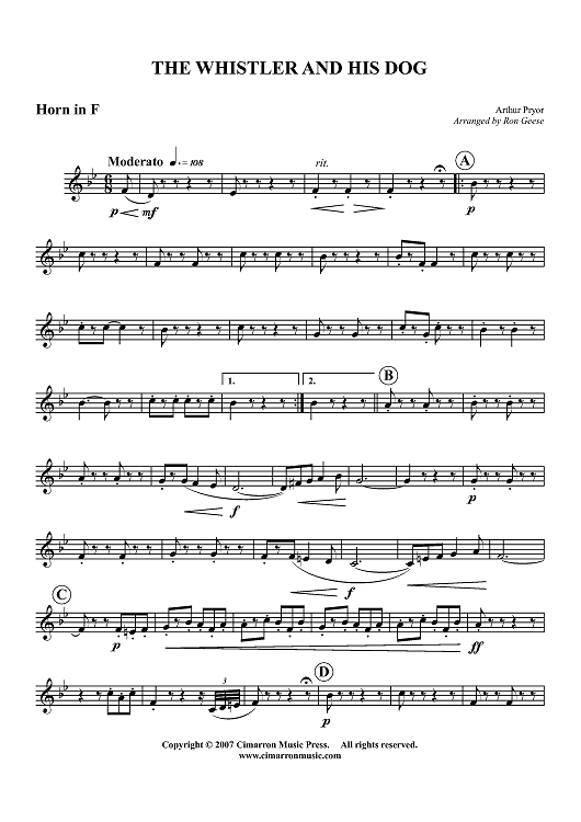 Digital Sheet Music for The Whistler and His Dog - Horn in F by , Arthur Pryor, Ron Geese scored for Woodwind Quintet; id:365804