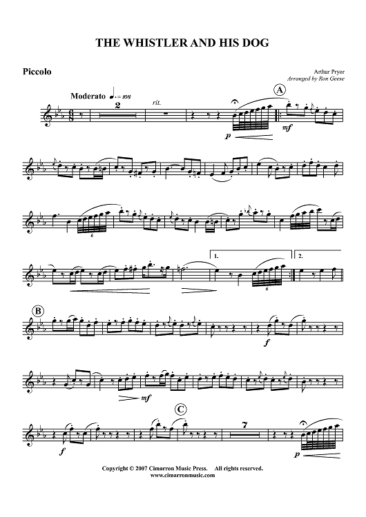 "The Whistler and His Dog - Piccolo" Sheet Music by Arthur Pryor