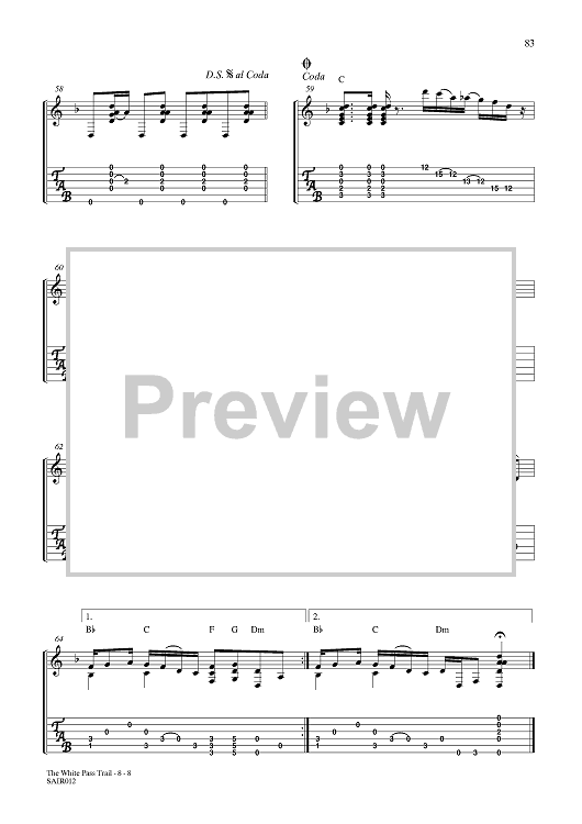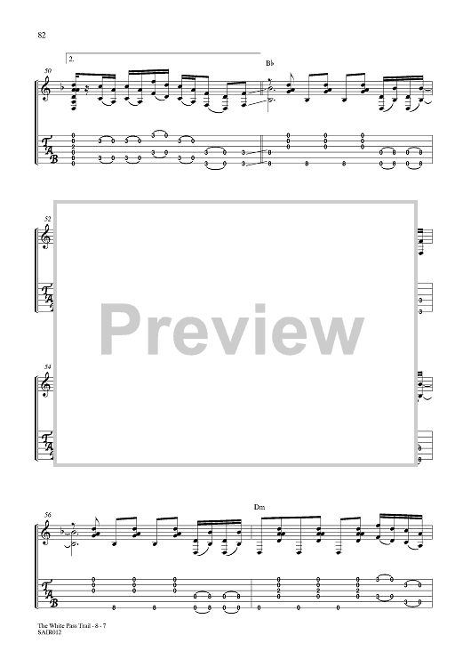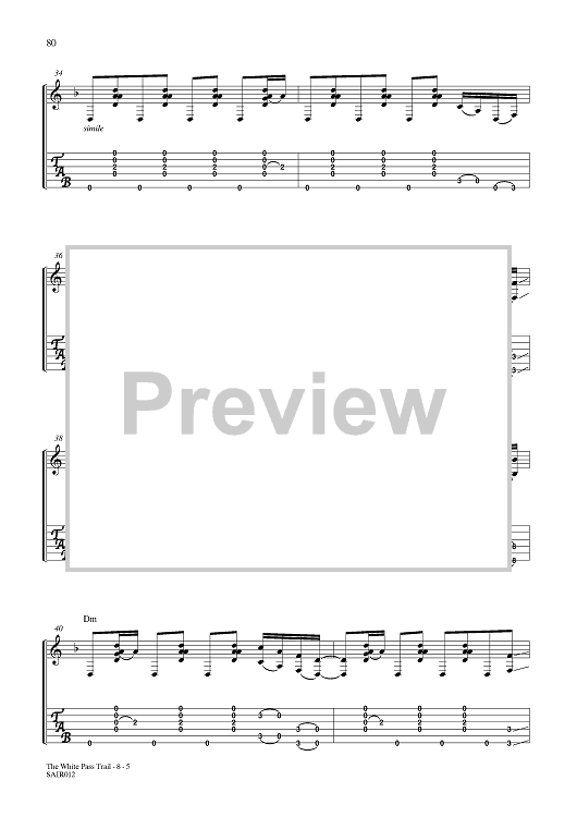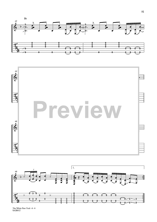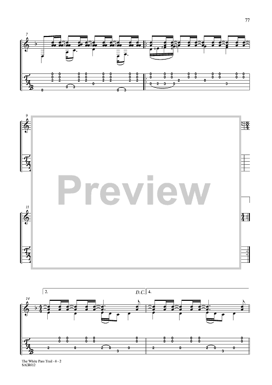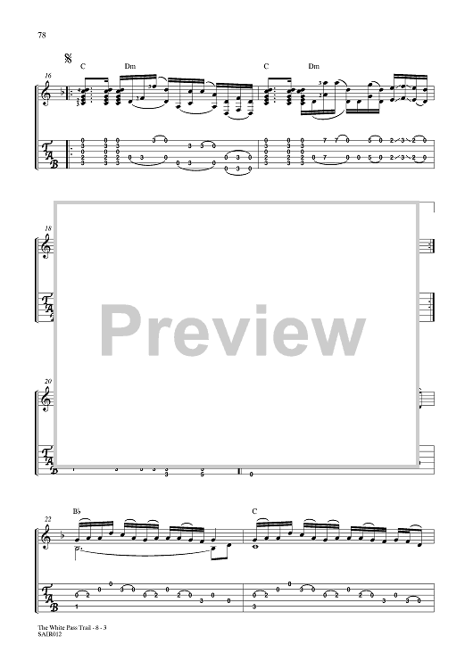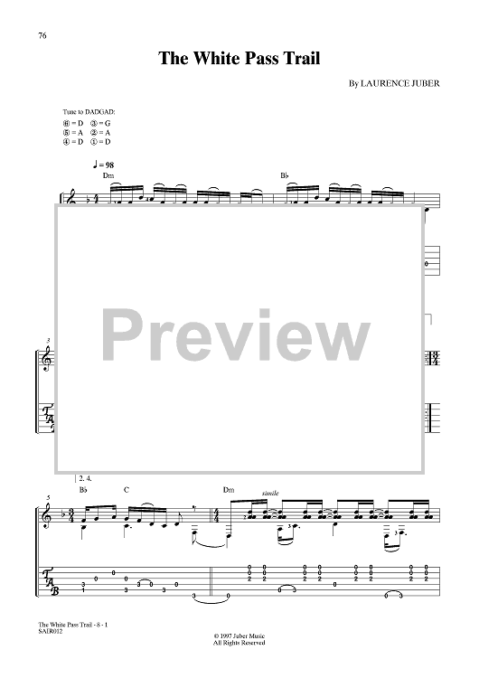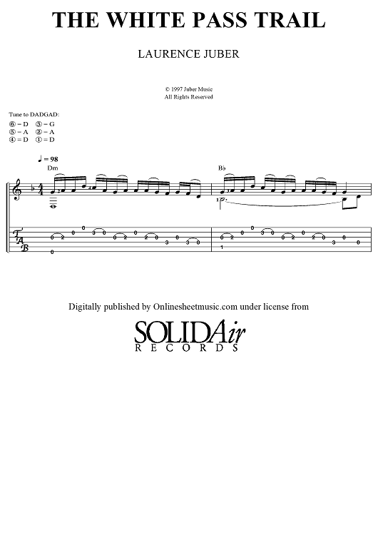 Digital Sheet Music for The White Pass Trail (No MP3) by , Laurence Juber scored for Guitar Tab; id:451785