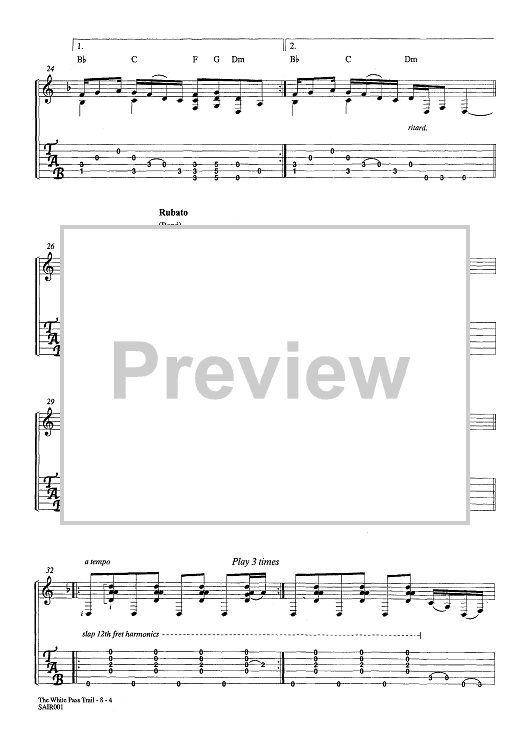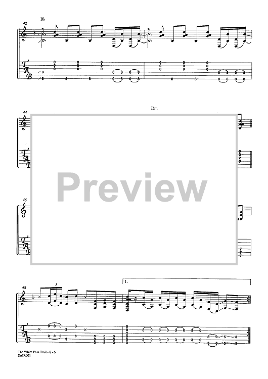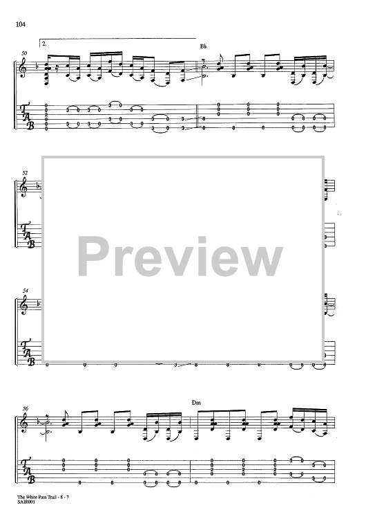 Digital Sheet Music for The White Pass Trail (With Embedded Audio) by , Laurence Juber scored for Guitar Tab; id:452061