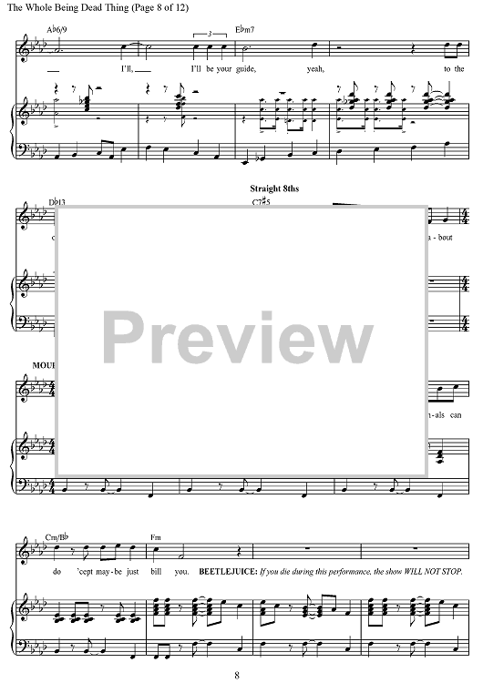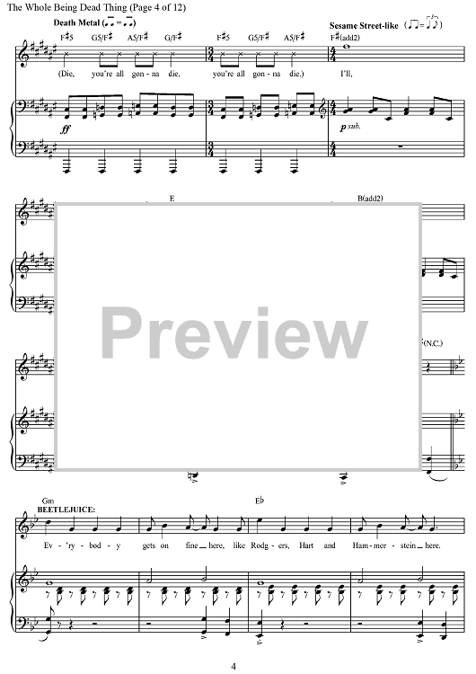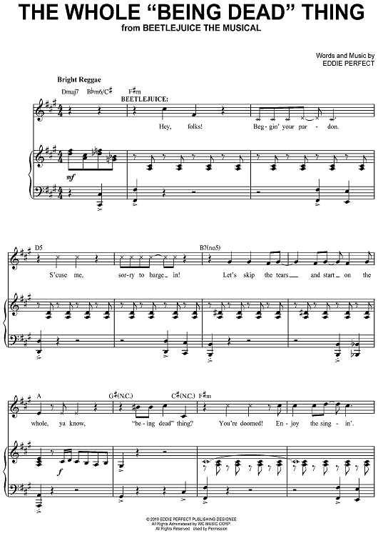 Digital Sheet Music for The Whole "Being Dead" Thing - from Beetlejuice - The Musical by Eddie Perfect scored for Piano/Vocal/Chords; id:468349