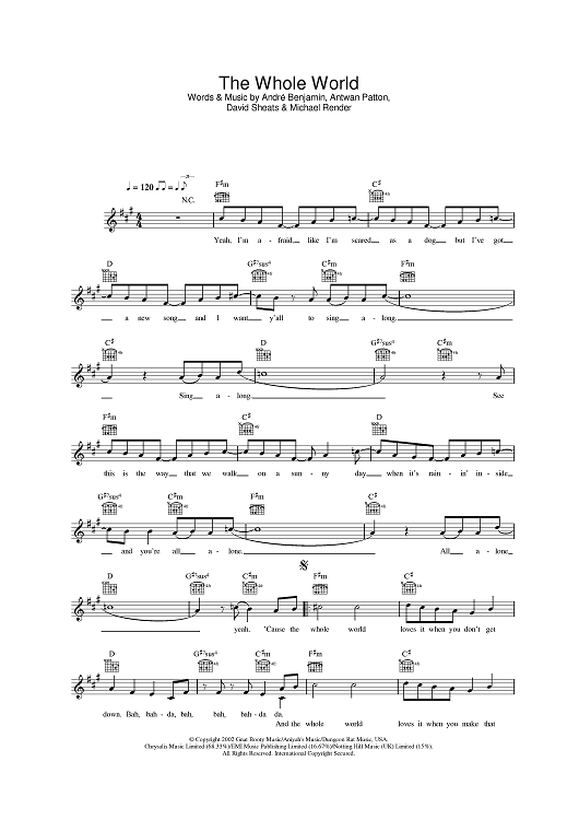 Digital Sheet Music for The Whole World by André 3000, Big Boi, OutKast, David Sheats scored for Lead Sheet; id:382900