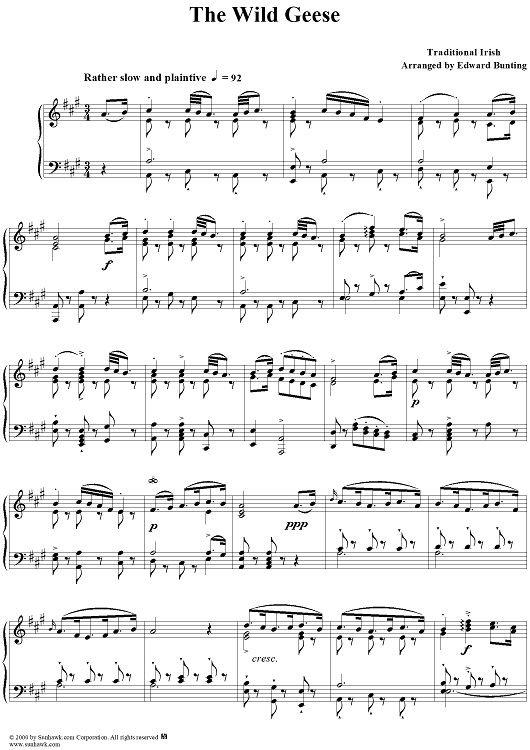 Digital Sheet Music for The Wild Geese by , Edward Bunting, Traditional scored for Piano Solo; id:234673