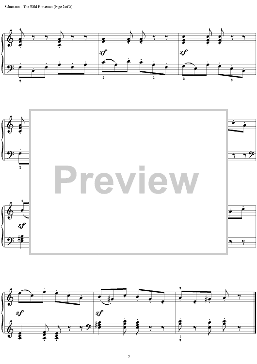 Digital Sheet Music for The Wild Horseman by Robert Schumann scored for Easy Piano; id:284673