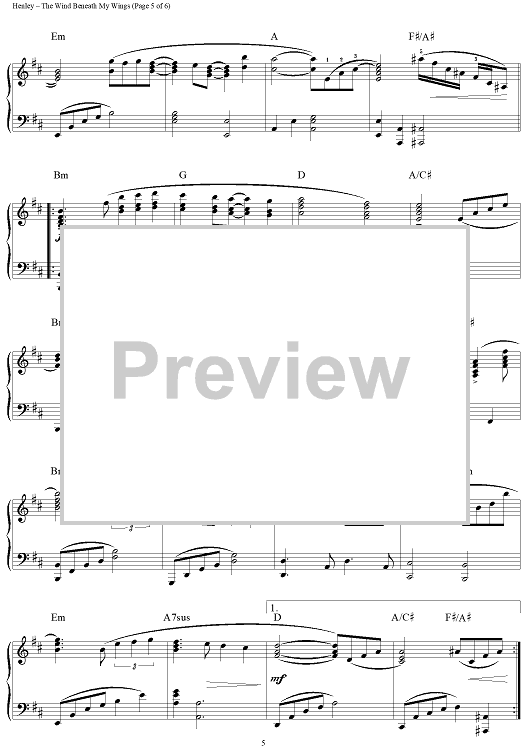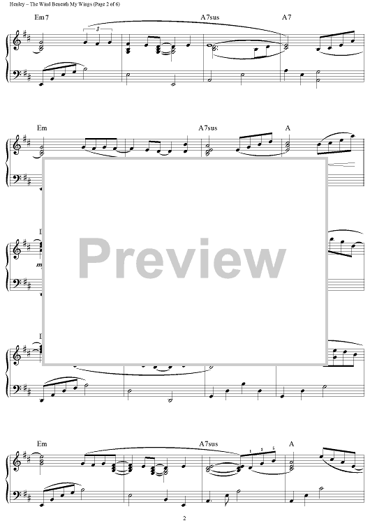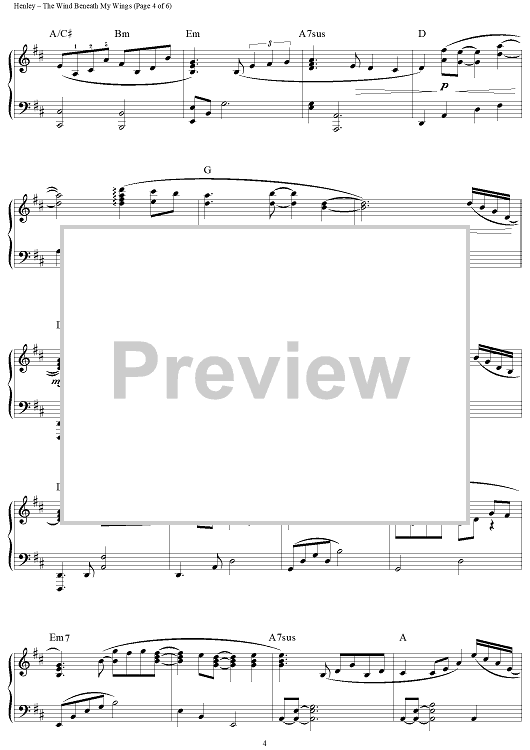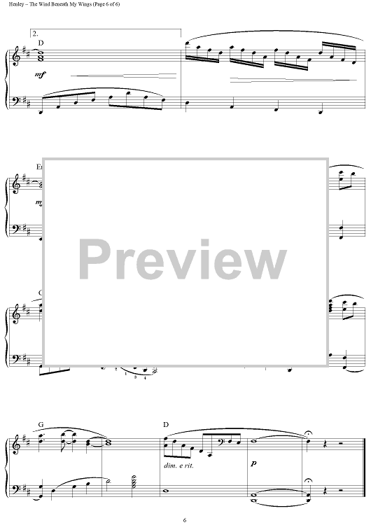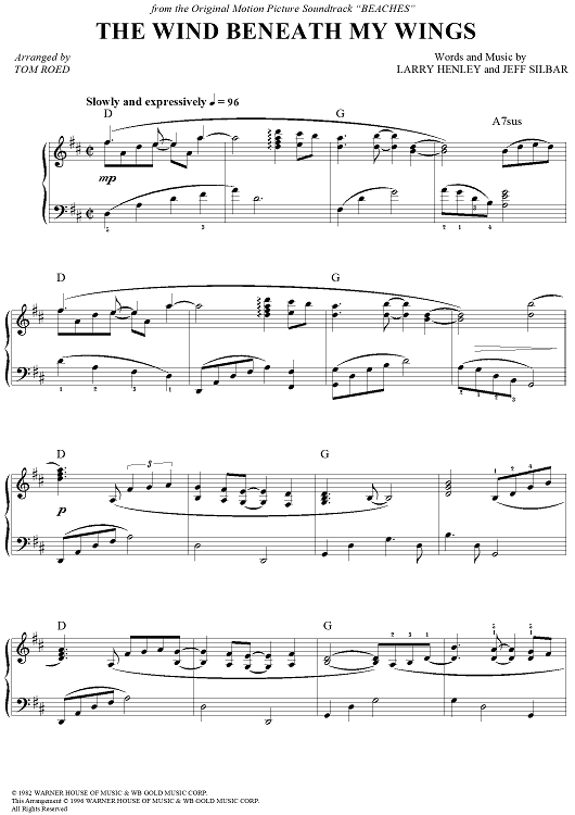 Digital Sheet Music for The Wind Beneath My Wings by Larry Henley, Jeff Silbar, Tom Roed, Bette Midler scored for Piano Solo; id:135504