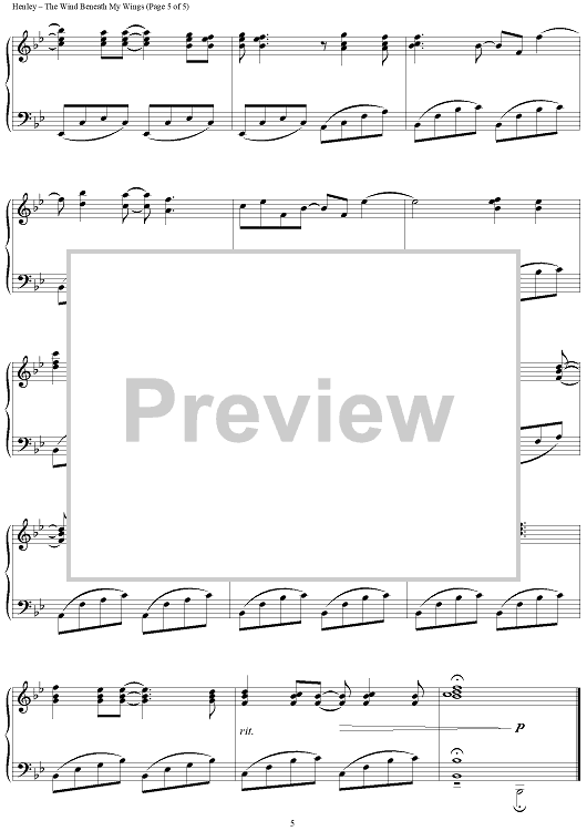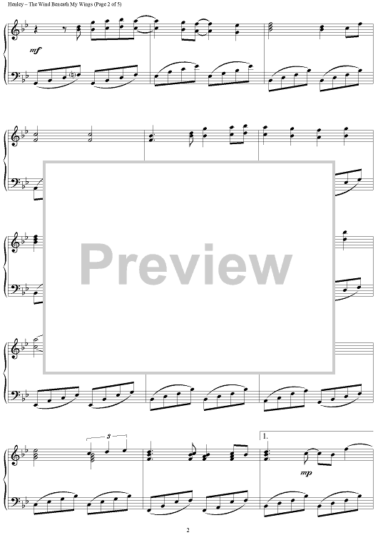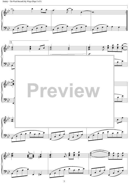 Digital Sheet Music for The Wind Beneath My Wings by Larry Henley, Jeff Silbar, Tony Esposito scored for Piano Solo; id:292987