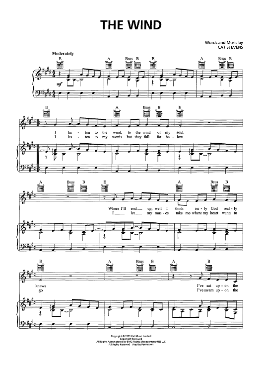 Digital Sheet Music for The Wind - from "This Is Us" by Cat Stevens scored for Piano/Vocal/Chords; id:466726