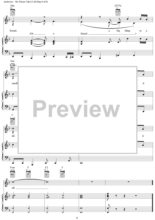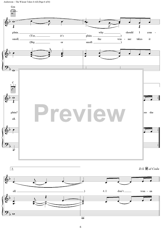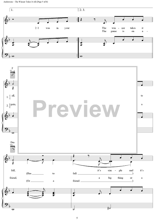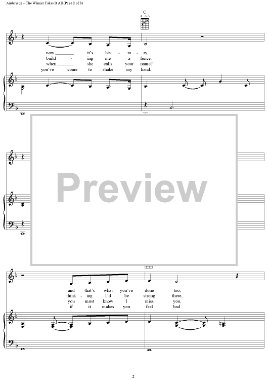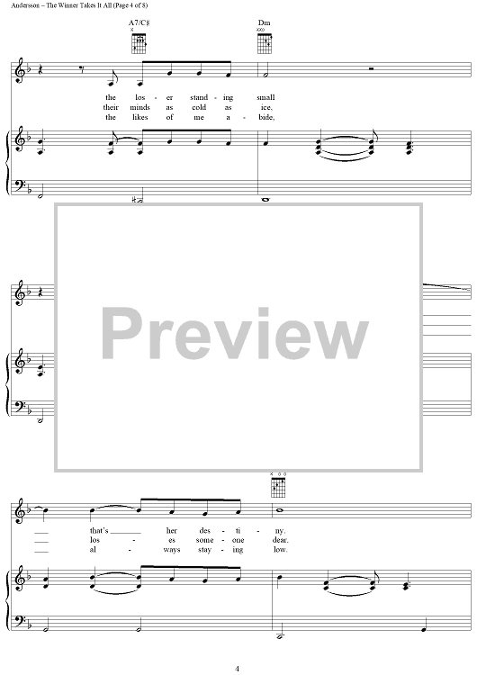 Digital Sheet Music for The Winner Takes It All by ABBA, Benny Andersson, Bjorn Ulvaeus scored for Piano/Vocal/Chords; id:314980
