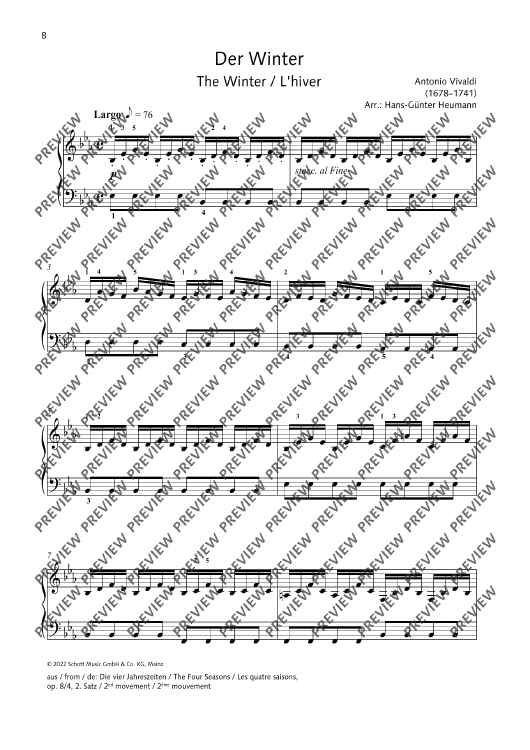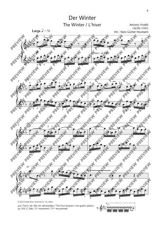 Digital Sheet Music for The Winter by Antonio Vivaldi, Hans-Guenter Heumann scored for Piano (4 Hands); id:497304