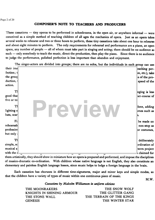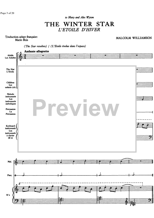Digital Sheet Music for The Winter Star - Score by Malcolm Williamson scored for Children and Youth Choir/Percussion/any Melody Instrument/Piano; id:333571