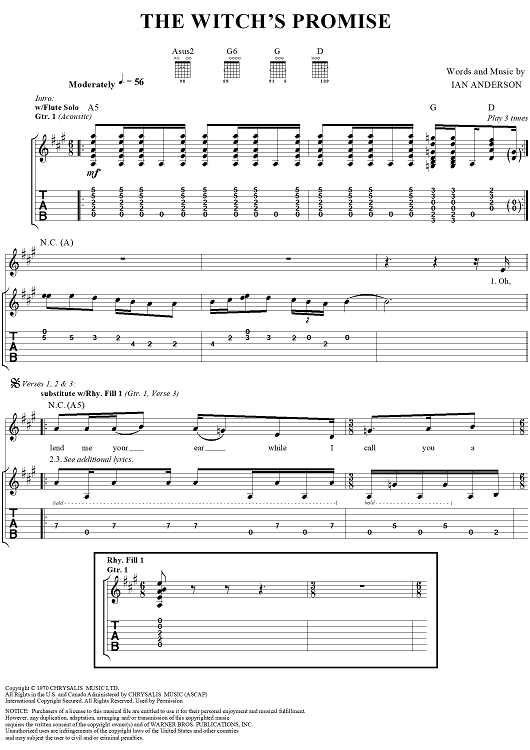 "The Witch's Promise" Sheet Music by Jethro Tull