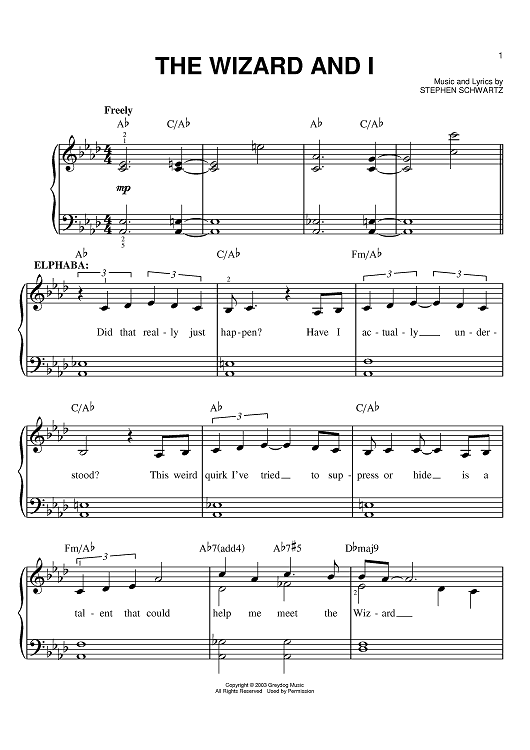 "The Wizard And I" Sheet Music by Stephen Schwartz