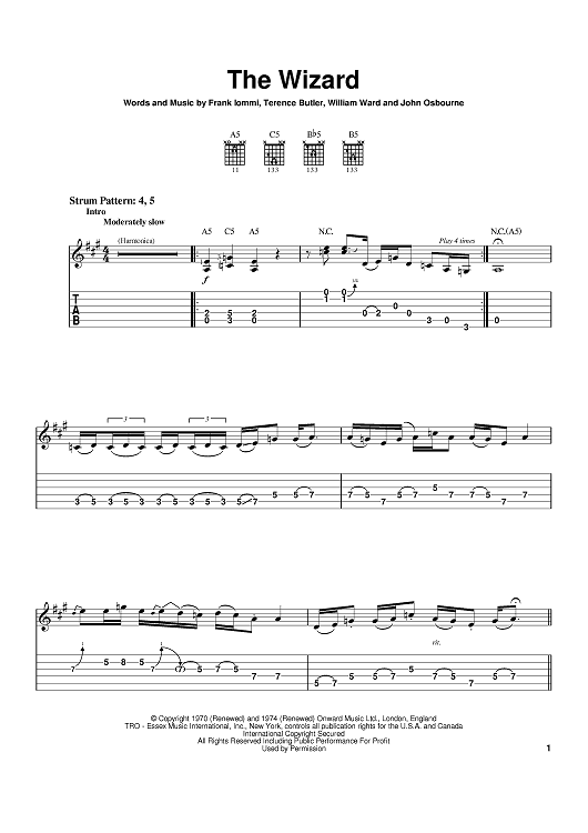 Digital Sheet Music for The Wizard by Bill Ward, Black Sabbath, Geezer Butler, Tony Iommi, Ozzy Osbourne scored for Easy Guitar Tab; id:373191