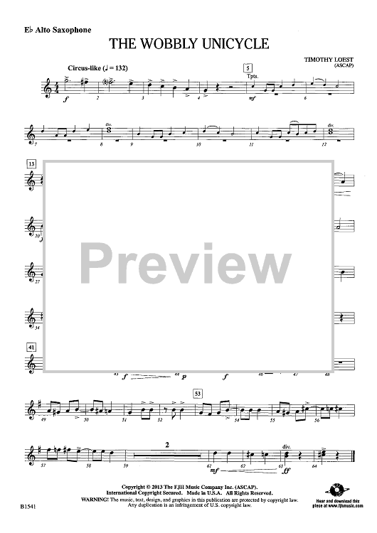 Digital Sheet Music for The Wobbly Unicycle - Eb Alto Sax by Timothy Loest scored for Concert Band; id:440178