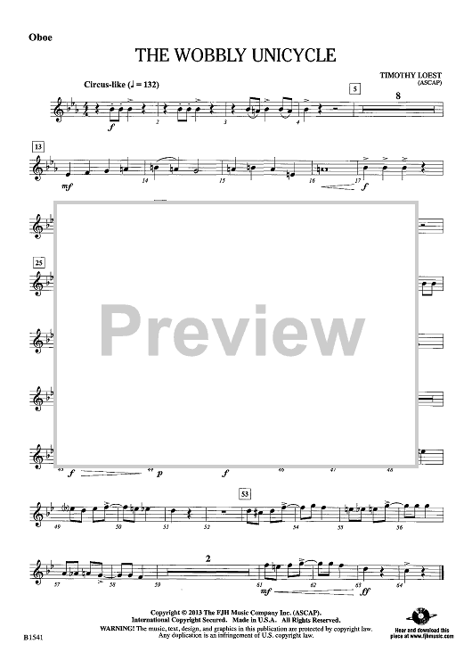 "The Wobbly Unicycle - Oboe" Sheet Music by Timothy Loest