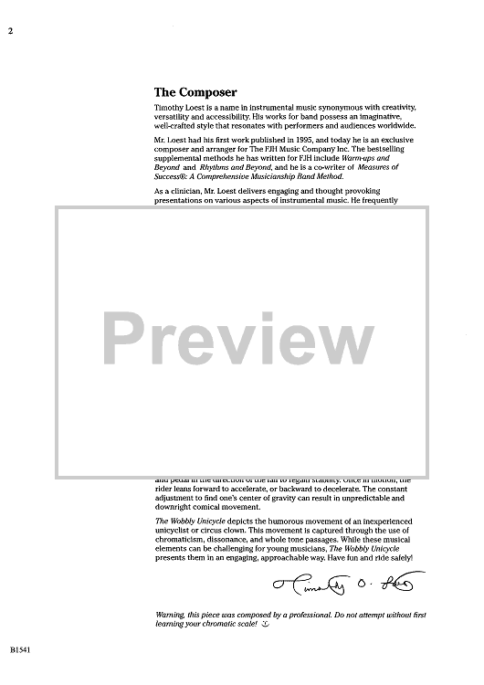 Digital Sheet Music for The Wobbly Unicycle - Score Cover by Timothy Loest scored for Concert Band; id:440171
