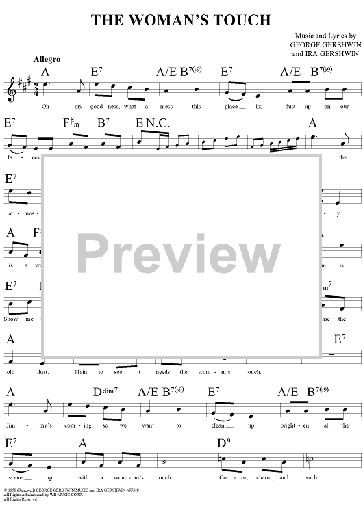 Digital Sheet Music for The Woman's Touch by , George Gershwin, Ira Gershwin scored for Lead Sheet; id:283671
