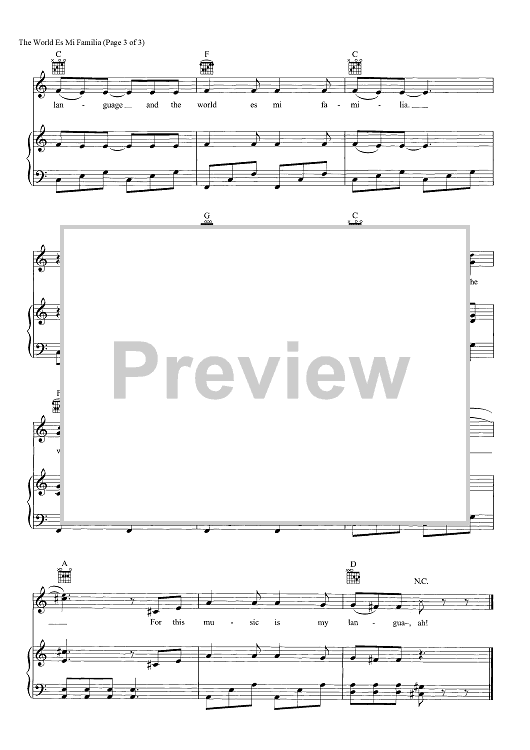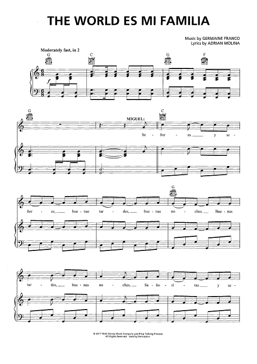 Digital Sheet Music for The World Es Mi Familia - from COCO by Germaine Franco, Adrian Molina scored for Piano/Vocal/Chords; id:466185