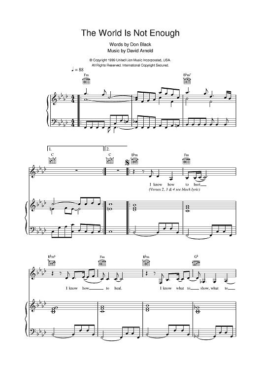 Digital Sheet Music for The World Is Not Enough by Don Black, Garbage, David Arnold scored for Piano/Vocal/Chords; id:380041