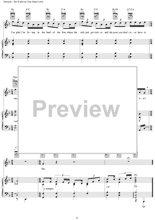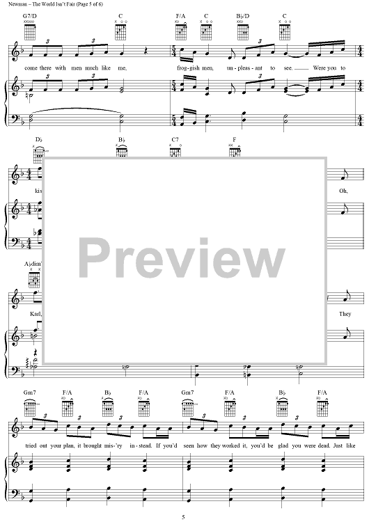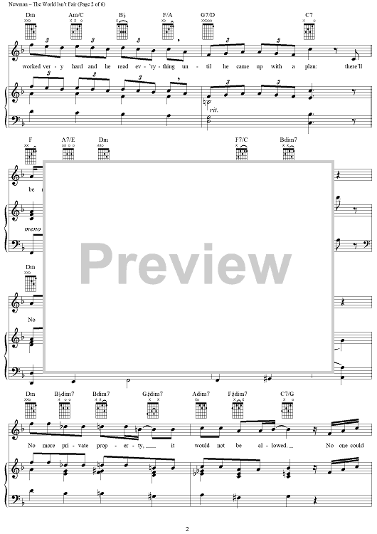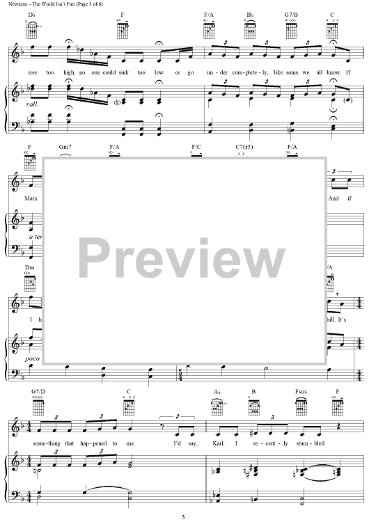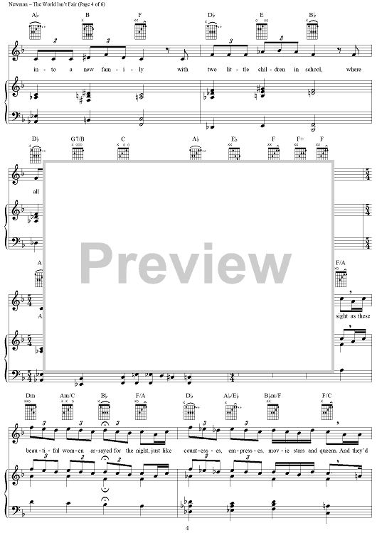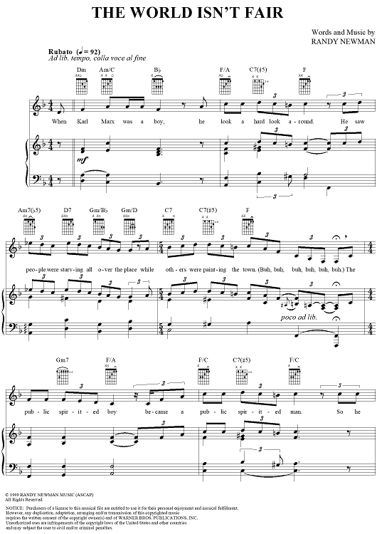 Digital Sheet Music for The World Isn't Fair by Randy Newman scored for Piano/Vocal/Chords; id:253506