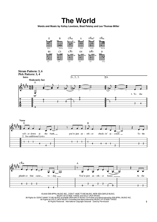 Digital Sheet Music for The World by Kelley Lovelace, Brad Paisley scored for Easy Guitar Tab; id:396085