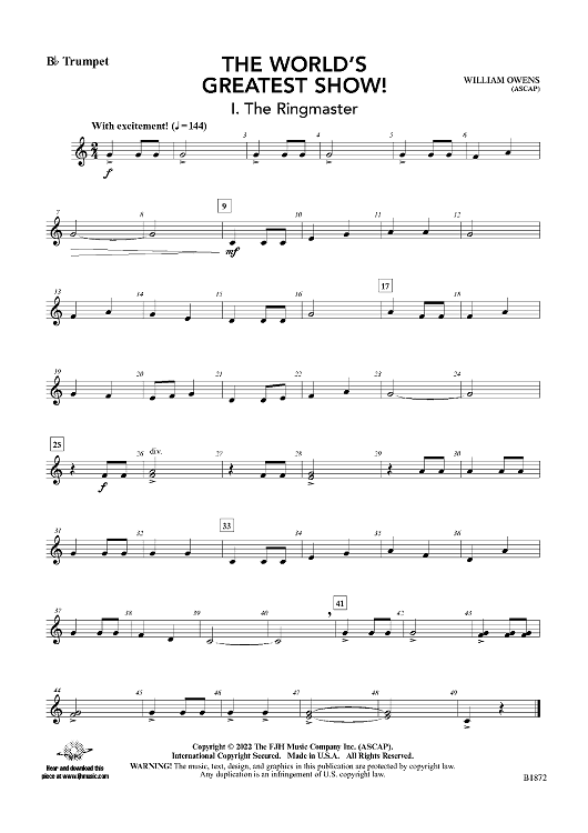 Digital Sheet Music for The World’s Greatest Show! - Bb Trumpet by William Owens scored for Concert Band; id:498585