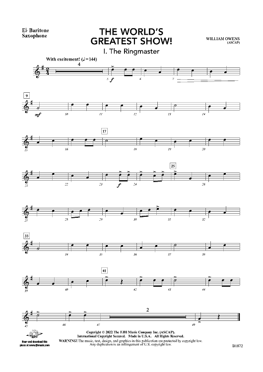 "The World’s Greatest Show! - Eb Baritone Sax" Sheet Music by William Owens