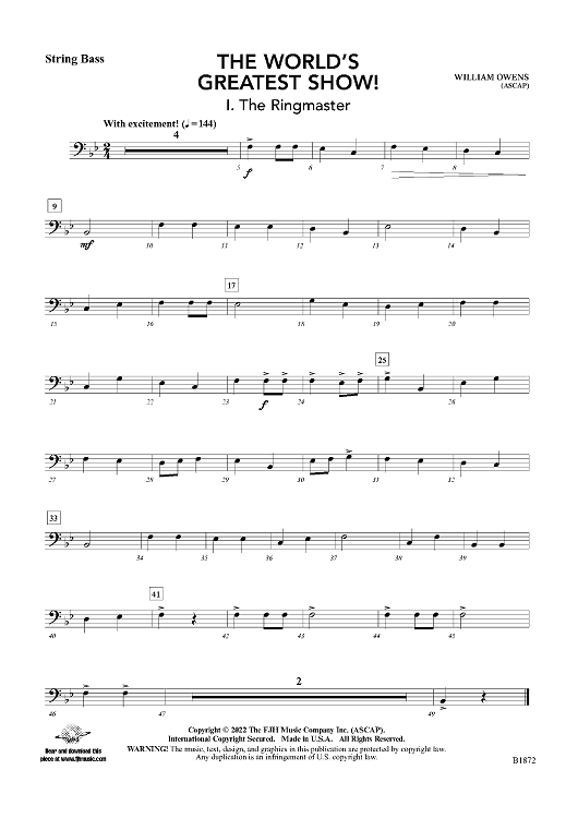 "The World’s Greatest Show! - String Bass" Sheet Music by William Owens