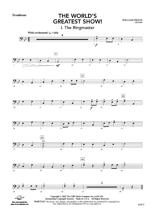 Digital Sheet Music for The World’s Greatest Show! - Trombone by William Owens scored for Concert Band; id:498587