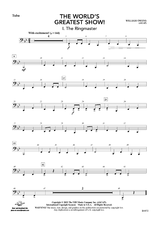 Digital Sheet Music for The World’s Greatest Show! - Tuba by William Owens scored for Concert Band; id:498590