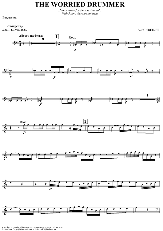 Digital Sheet Music for The Worried Drummer - Percussion by A. Schreiner, Saul Goodman scored for Percussion/Piano; id:425789