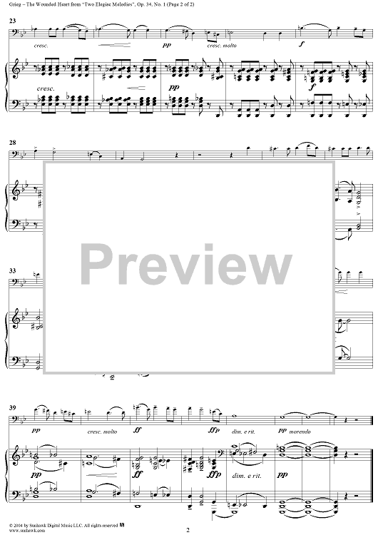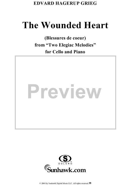 Digital Sheet Music for The Wounded Heart, No. 1 from "Two Elegiac Melodies", Op. 34 - Full Score by Edvard Grieg scored for Cello/Piano; id:303877