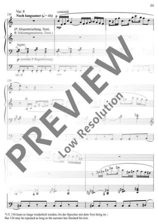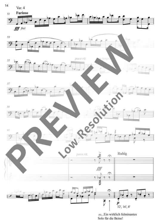 Inspired by Benjamin Britten's The Young Person’s Guide To The Orchestra, Harald Feller wrote this work for organ and narrator. By combining musical, technical and tonal possibilities of the organ, he wants to arouse the listener's interest and enthusiasm for organ music and make it accessible to a wide (not just young) audience. This work of about 20 minutes' duration can also be performed without narrator.