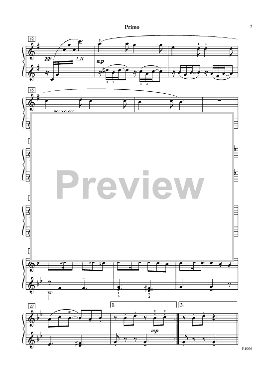 This outstanding arrangement of Rimsky-Korsakov’s romantic masterpiece is wonderfully choreographed for two players at one piano. Each part offers abundant opportunity for expressive playing. The secondo part is perfect for a teacher or advanced student. Great for ensemble musicianship!
