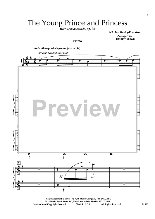 "The Young Prince and Princess from Rimsky-Korsakov's Scheherazade" Sheet Music by Nikolai Rimsky-Korsakov