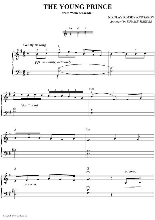 Digital Sheet Music for The Young Prince from 'Scheherazade' by Ronald Herder, Nikolai Rimsky-Korsakov scored for Easy Piano; id:284886