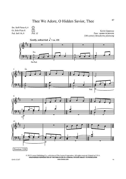 Digital Sheet Music for Thee We Adore, O Hidden Savior, Thee by , Benedictine plainsong, Kevin Uppercue scored for Organ Solo; id:434358